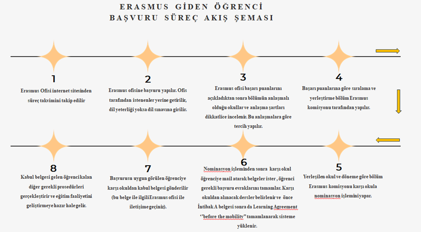 Önce İntibak A hazırlanmakta, onay alındıktan sonra Learning Agreement hazırlanmaktadır. Erasmus hareketliliğinden dönünce İntibak B hazırlanmaktadır. Learning Agreement’ın bölüm koordinatörü tarafından onaylanması gerekmektedir. Learning Agreement ile ilgili bilgi ve hazırlanma süreci aşağıdaki web sayfasında detaylı olarak açıklanmıştır: